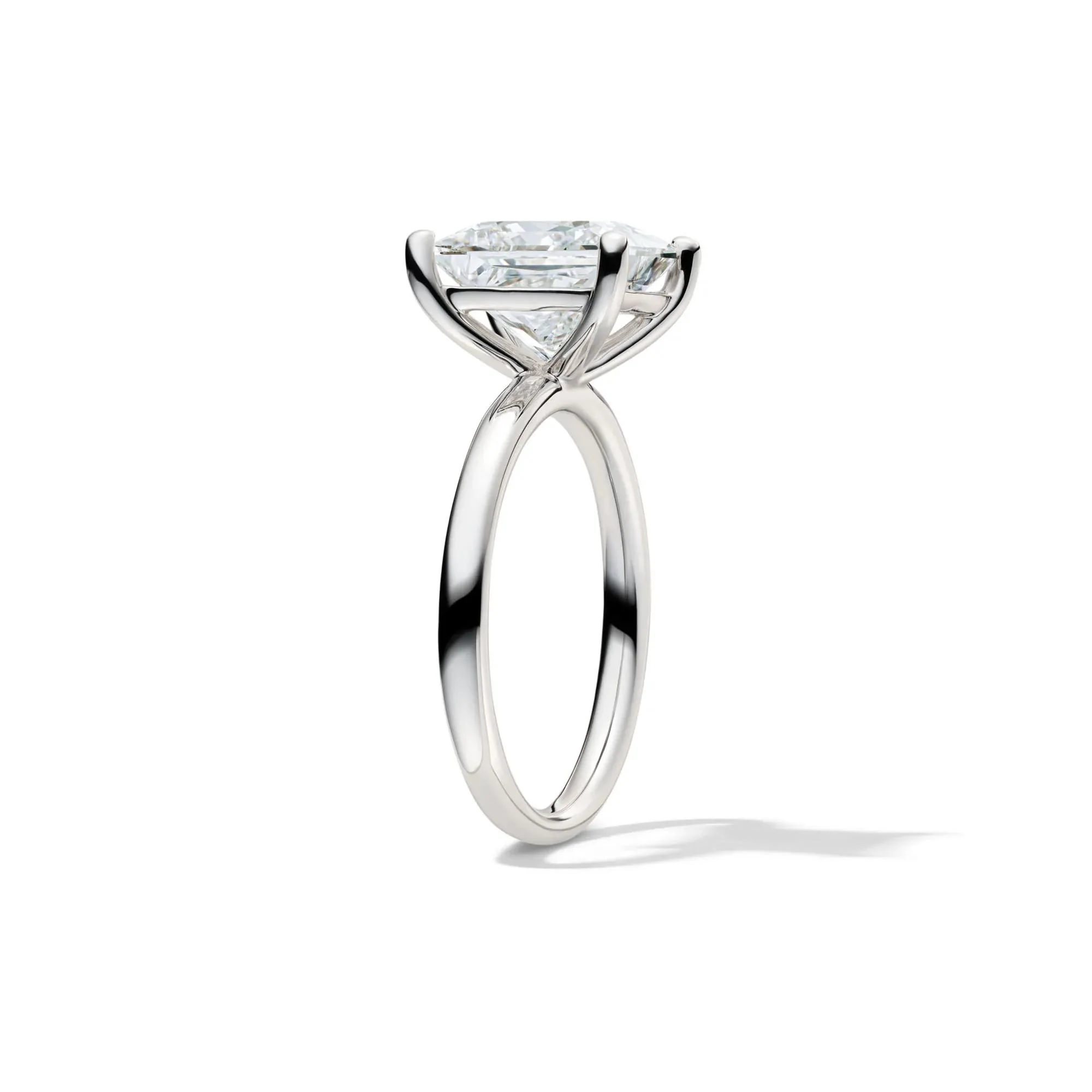 Materials: Crafted in solid platinum, this ring features a 4-carat GCAL-certified princess-cut lab-grown diamond with a 2mm band width in size 8.