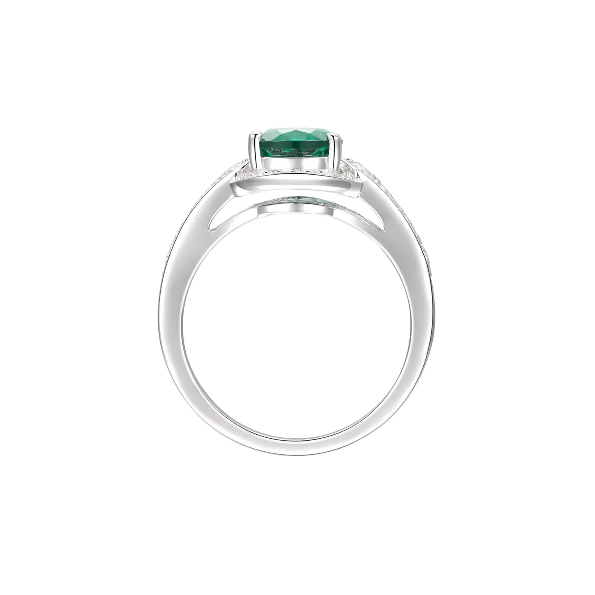 Materials: Crafted from .925 sterling silver, this jewelry set includes pear-shaped lab-created emerald and lab-created white sapphire pieces with a size 8.5 ring.
