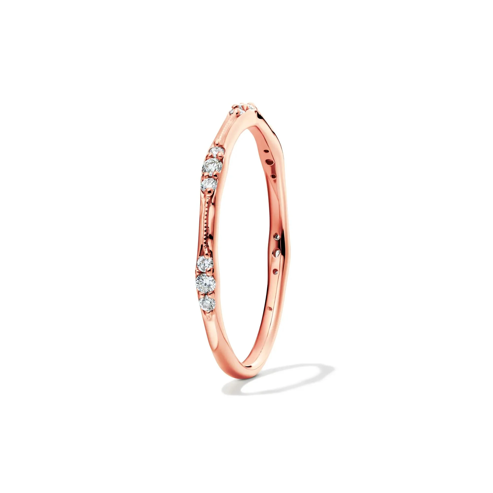 1/7 CT. Tw. Lab Grown Diamond Milgrain Stack Band Ring 10K Rose Gold Round Brilliant Cut Size 7.5 1mm