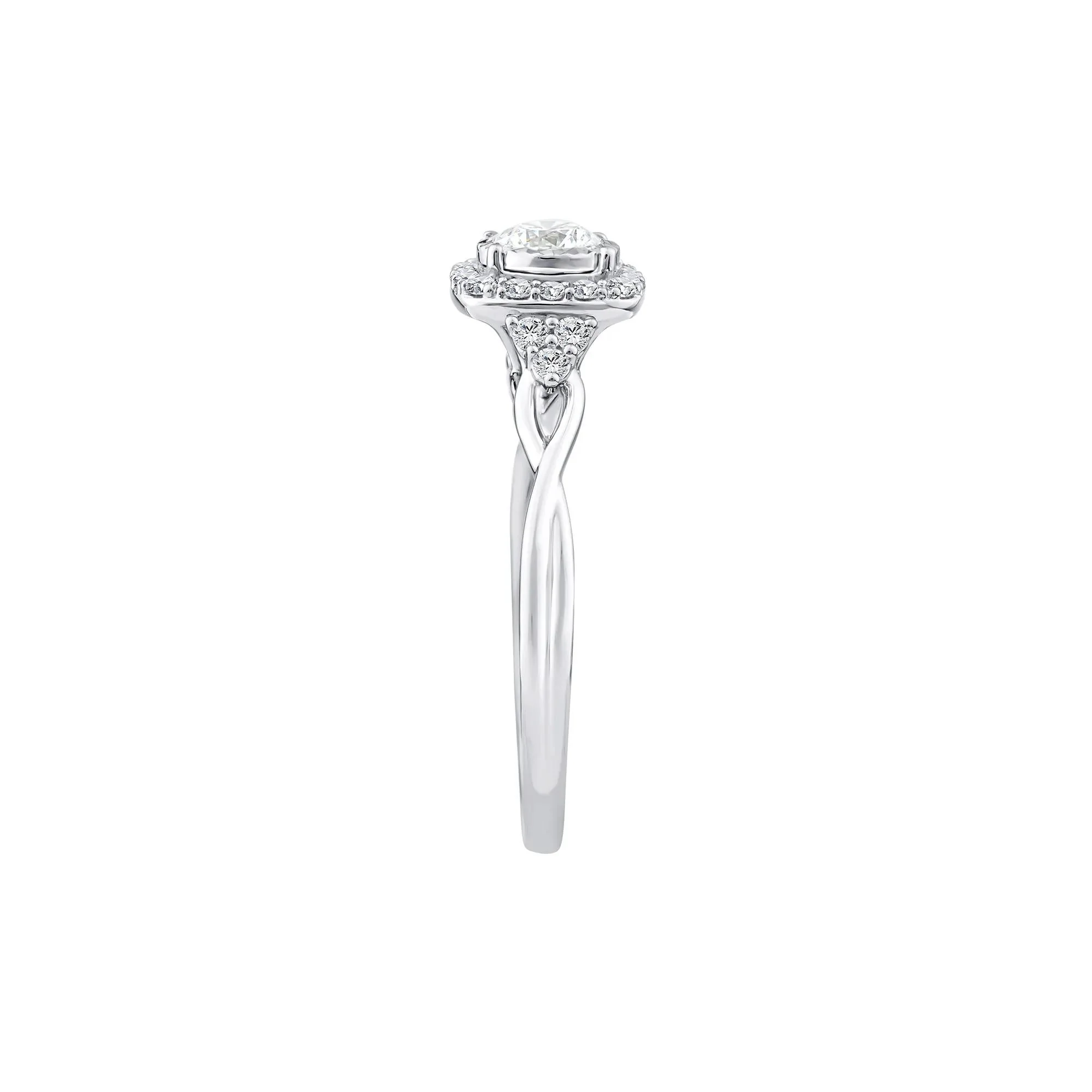 Materials: This ring is handcrafted in 10K white gold and features a 1/3 ct round lab-grown center and 22 accent diamonds for a 1/2 ct. tw. in a size 8, 1.5mm band.